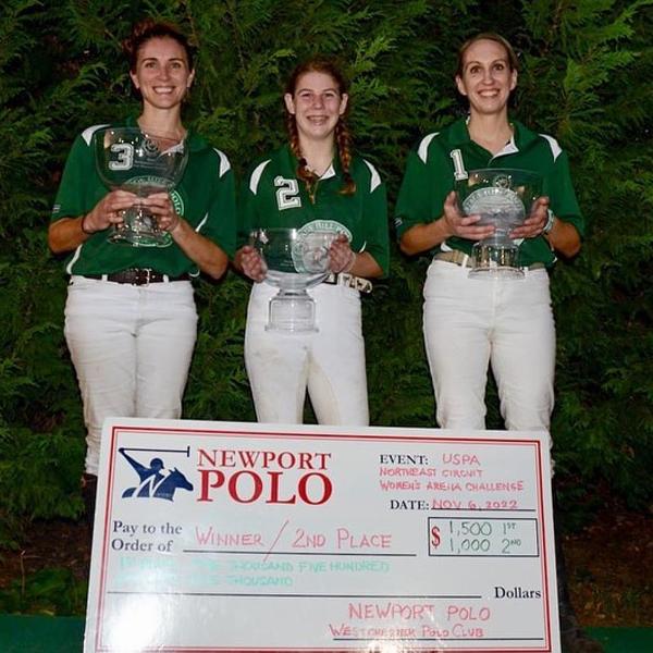 Newport Polo welcomed the return of competitive women's polo in an autumn fixture, the fourth annual USPA NE Circuit Women's Arena Challenge (3-6 goal) arena polo tournament. Four teams stepped up for the challenge, of varying handicaps from among the Northeastern Circuit of women polo players, assembling on the first weekend of Nov 5-6 at Newport Polo's private arena training center in Newport County to make their bid for $2500 in prize money, mantlepiece trophies, winners names etched onto the perpetual trophy and a yearbook page in the United States Polo Association annual blue book (page 506) to live on in polo history.